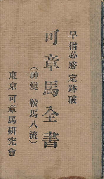 早指必勝定跡破 可章馬全書 (神變 鞍馬八流)著者:野田圭甫発行所:東京可章馬研究會 発行日:大正15年11月5日発行 ページ数:52 定価:50銭 |