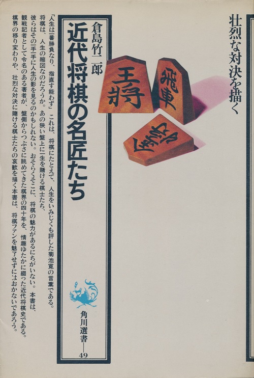 近代将棋の名匠たち著者:倉島竹二郎発行所:角川書店 発行日:昭和46年10月20日 初版発行 ページ数:384 定価:760円 |