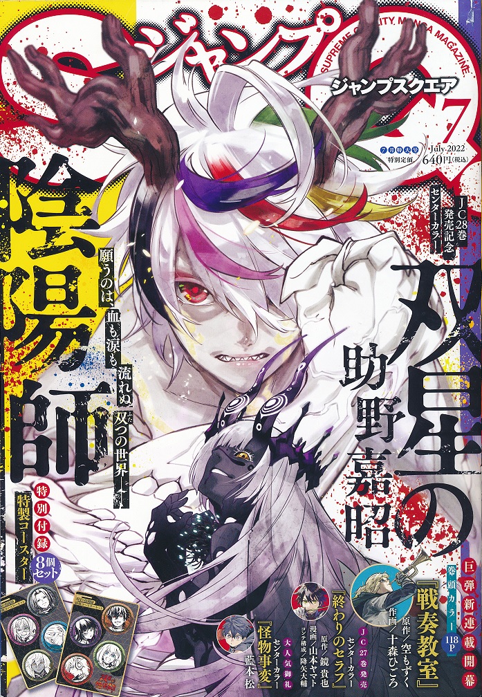 ジャンプSQ. 2022年7月号編集人:吉田幸司発行所:集英社 発行日:2022年6月3日発売 ページ数:840 定価:640円 |