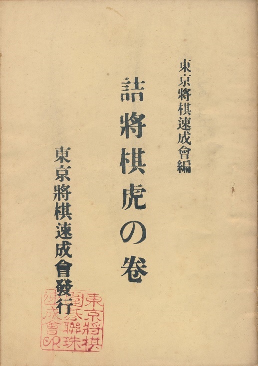 詰將棋虎の巻編者:荻野龍石発行所:東京將棋聯珠圍碁速成會 発行日:昭和3年4月20日 発行 発行日:昭和4年9月1日 8版発行 丁数:10 定価:50銭 |