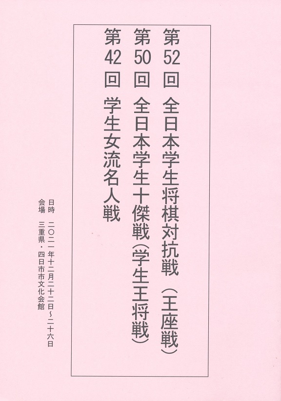 第52回全日本学生将棋対抗戦(王座戦) 第50回全日本学生十傑戦(学生王将戦) 第42回学生女流名人戦